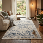 Le Tapis Grenada 358 Crème Bleu : L’alliance parfaite de l’élégance classique et du confort moderne.